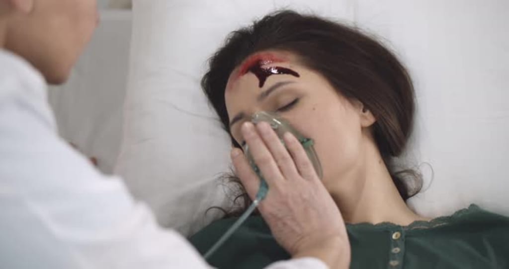 Sarah knew she was driving too fast for the condition of the road, but she was late for her appointment. The rain was coming down fiercely and the water was covering the road in places. The turn coming up was sharp but instead of slowing down, Sarah tried to take it at high speed. Her car hydroplaned across the road to the other side and into a deep ditch. The car's airbags failed to deploy and Sarah hit her head forcefully against the top of the door. Everything went dark.