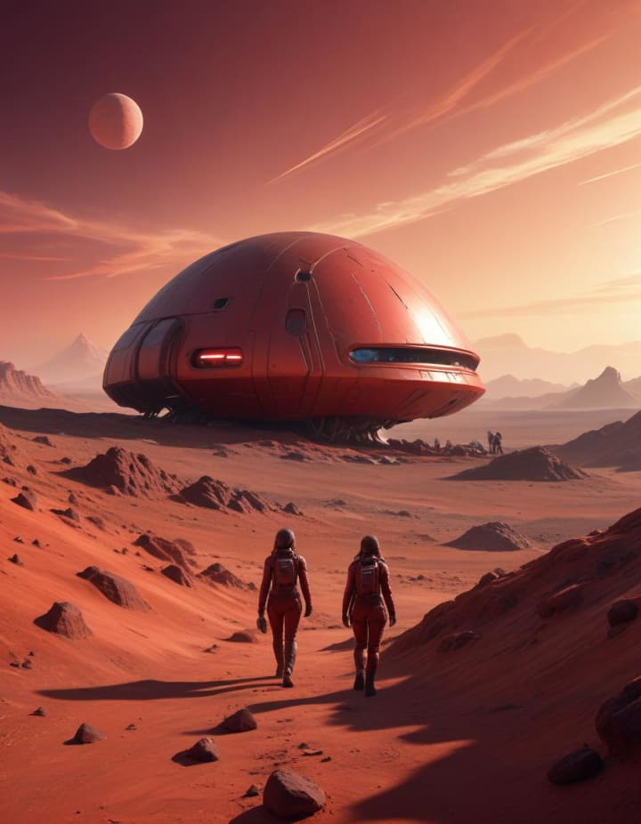 And then, she saw him. Alex, standing by a Mars habitat, his face illuminated by the soft glow of the dome. His eyes met hers, and for a moment, time stood still.