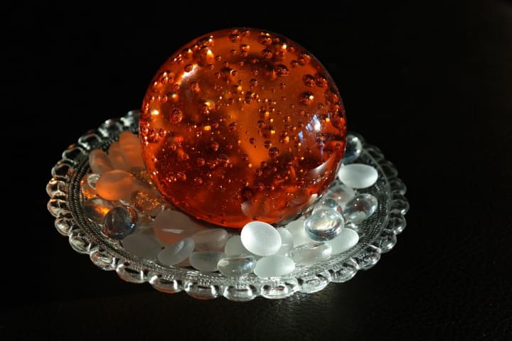 She sat back down, bowed her head, and took a couple of deep breaths. She slowly placed her hands on the crystal ball, waiting for the answer to show. She closed her eyes again and started to breathe deeply. She began to mumble. I couldn't make out what she was saying, but I could imagine it was in Creole. She opened her eyes and looked into the crystal again. It started to turn Orange. Intrigued, I leaned forward to get a closer look. She grabbed the tarot cards and placed two in front of me. She stared at me, flipping over the first card; it was Twin Flame. The second card she flipped over was a Marigold Flower. I snatched my glass of water from the table and guzzled the rest of the water. I was shocked to see the flower I saw earlier that day.