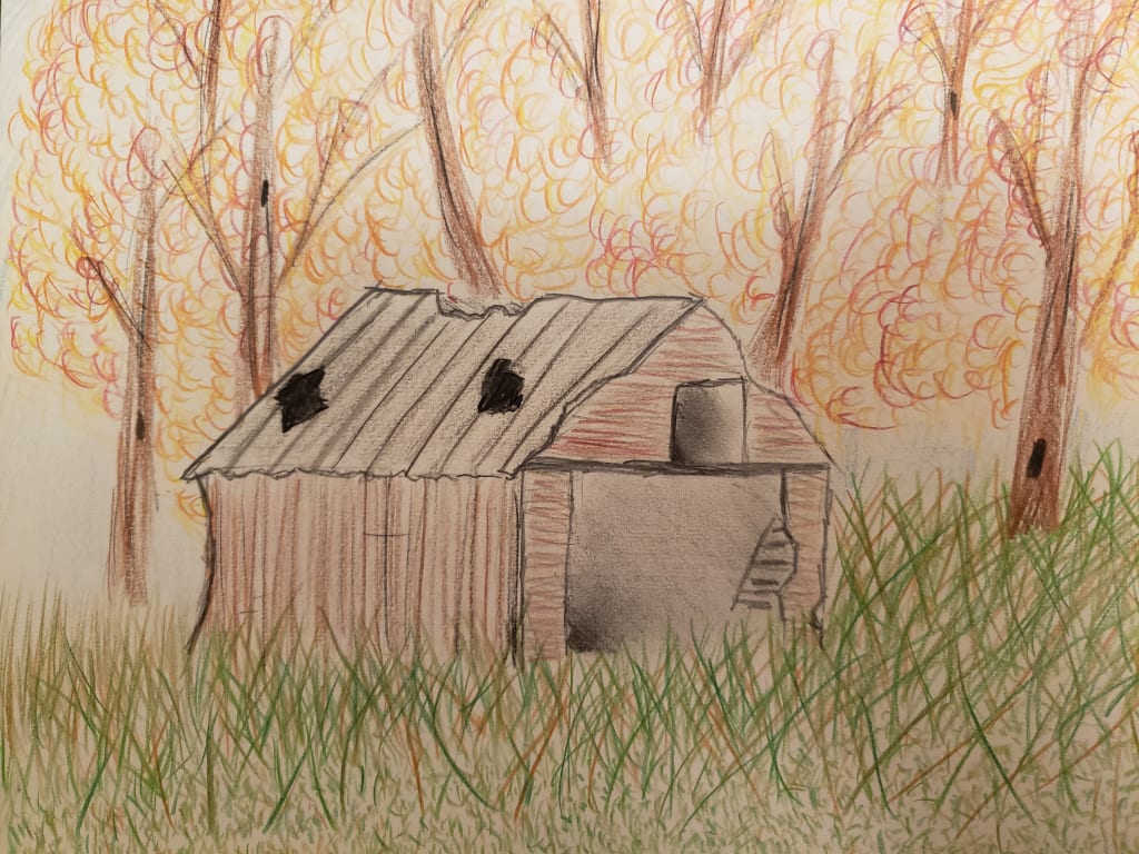 Her father had just painted the barn with a bright red color, all of them having helped a bit, which she was regretting now. The paint would not come off her hands no matter how much she scrubbed. Her mother hadn’t been any help, telling her to wear a red dress to match. She wanted to mingle, but how could she possibly when she was covered in red paint? Her brothers were having the time of their lives, but she was stuck in the corner like a wallflower. Covered in dried paint.