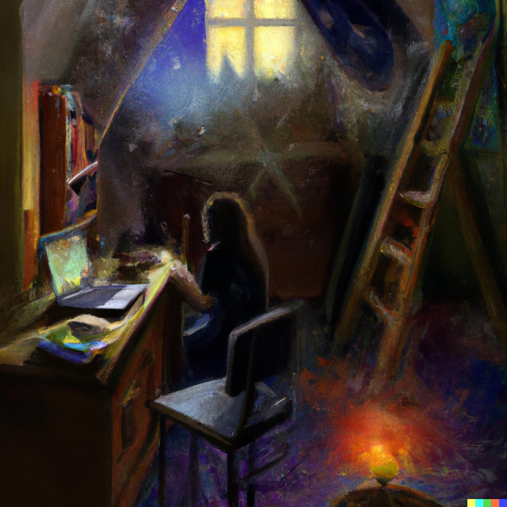 “Ginny—shut it. You are not helping anything. We won’t know until we get a sample down to the library,” Karissa muttered as she helped stack a second nearby foot-stool precariously atop the first; stepping back to admire her handy-work— “that should do for now Cassie, who wants to be the first one up?”