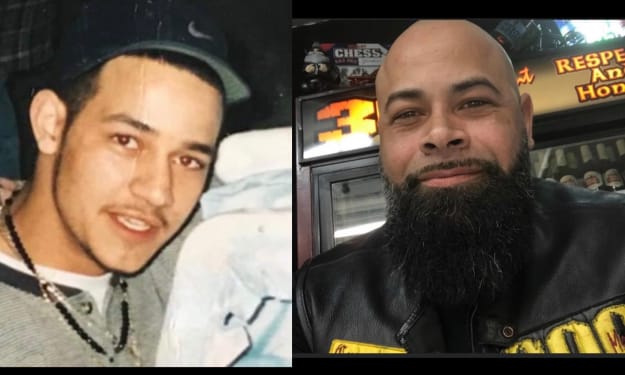Davey was slightly shorter and slightly slimmer than Jarreth but had the same greasy long black hair and beard, although his eyes were bright blue, huge, and they made him look deranged. Davey had a large gash on his left cheek causing blood to pour in a cascade from his chin. Not even bother to wipe the blood, he cocked his head to the side and smiled a wide grin, showing his prematurely yellowed, jagged teeth. He could've been no older than twenty-five.