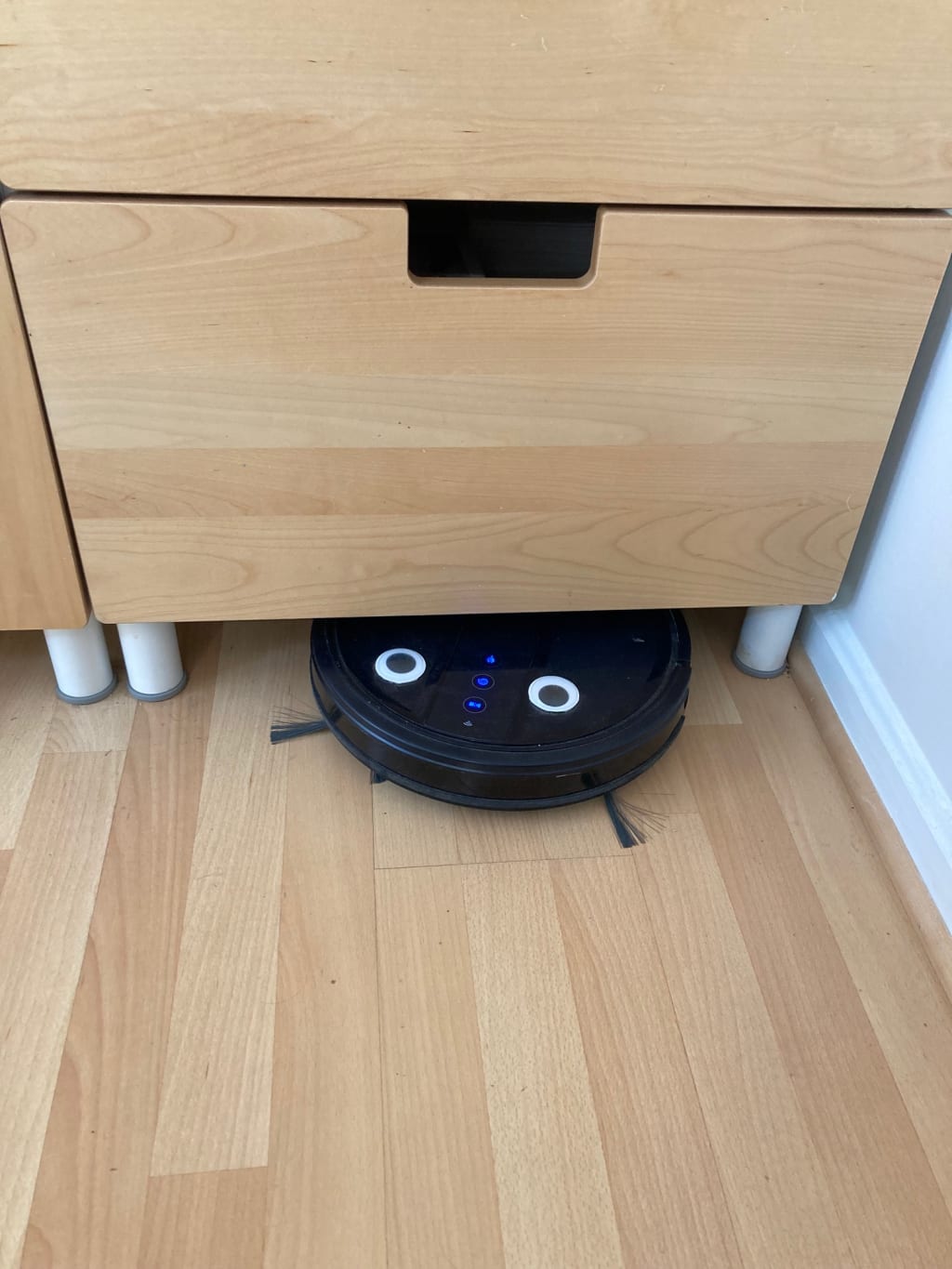 I ordered one of those robot vacuums and some self adhesive googly eyes. Thus, Marvin was born. He was charming, if a little stupid, always pulling the ant traps out from under the furniture. One day Marvin retrieved a long black furry object. He pushed it towards me like an offering. I screamed when I realized…