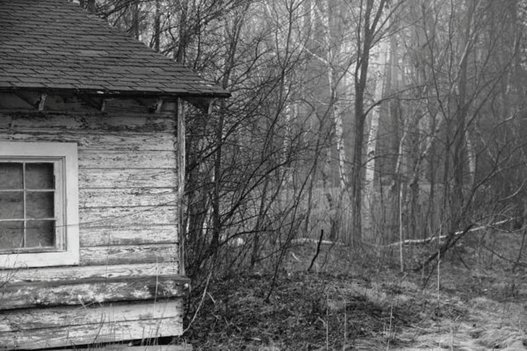 A thick fog rolled over the dense wood, twisting in between the trees, as if it were snakes searching for prey. Touching each leaf and stone, discarding droplets of icy cold water on every surface or touched. These veins of cool mist slithered to a clearing, where they wrapped around a small shack.