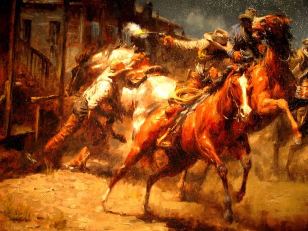 “Freddie!” Sloane screamed. He stopped his sorrel, dropped a man taking aim on a roof, and waved Freddie over with his gun. Freddie saw it before he could utter any sign of warning.