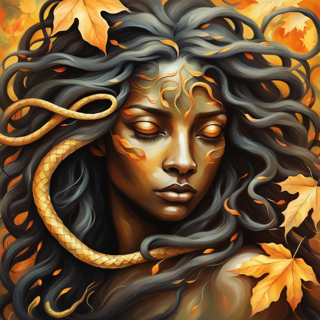 Her hair, once a cascade of curls, now moved like living serpents, each strand seeming to have a life all it's own. She clamped both of her hands over her mouth as she screamed. The snakes writhed with her every movement or sound. Her feet gave way under her and she sat on the floor, curling her legs beneath her. Distress and grief bathed her in a cloak of fog.