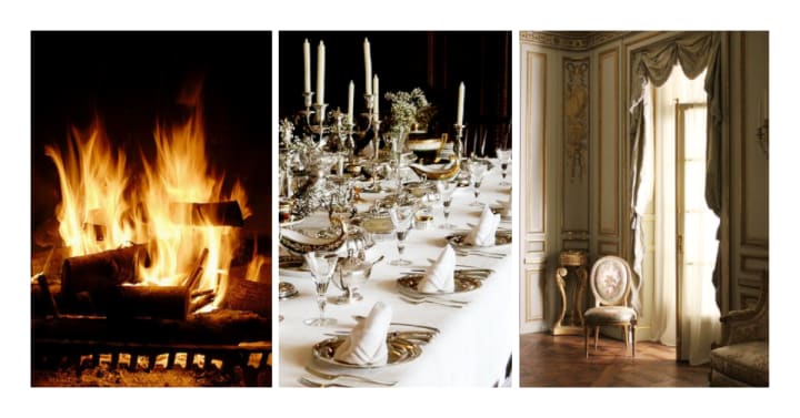 The dining room of Manderley first comes into focus when the narrator is fantasizing being Mrs de Winter: ‘I would be Mrs de Winter. I saw the polished table in the dining room, and the long candles. Maxim sitting at the end. A party of twenty-four. I had a flower in my hair. Everyone looked towards me, holding up his glass.’ (‘Rebecca’ by Daphne du Maurier) The next fantasy takes place in the room itself. This time, sitting at the dining table, the narrator imagines herself to be Rebecca: ‘As I sat down to dinner in the dining-room in my accustomed place, with Maxim at the head of the table, I pictured Rebecca sitting in where I sat now, picking up her fork for the fish and then the telephone ringing and Frith coming into the room and saying ‘Mr Favell on the phone. Madam, wishing to speak to you,’ and Rebecca would get up from her chair with a quick glance at Maxim, who would not say anything, who would go on eating his fish. And when she came back, having finished her conversation, and sat down in her place again, Rebecca would begin talking about something different, in a gay, careless way, to cover up the little cloud between them. At first Maxim would be glum, answering in mono-syllables, but little by little she would win his humour back again, telling him some story of her day, about someone she had seen in Kerrith, and when they had finished the next course he would be laughing again, looking at her and smiling, putting out his hand to her across the table. ‘What the devil are you thinking about?’ said Maxim.’ I started, the colour flooding my face, for in that brief moment, sixty seconds in time perhaps, I had so identified myself with Rebecca that my own dull self did not exist, had never come to Manderley, I had gone back in thought and in person to the days that were gone.’ (‘Rebecca’ by Daphne du Maurier)