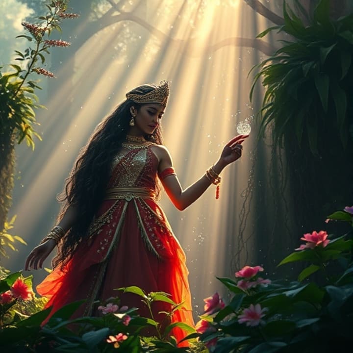 This girl was Mohini. She was found as a baby near a sacred grove and raised by kind villagers. Even as a child, Mohini had an otherworldly beauty and a heart full of kindness. She helped those in need, healing their pain with her soothing words and gentle smile. But Mohini didn’t know she was destined for something far greater.