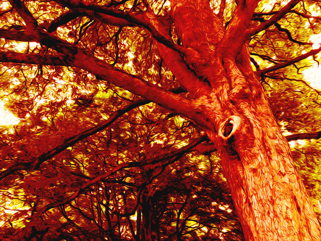 Molly named her home tree Arnold, after the actor in the terrible action films her brother loved watching. Although dead he remained imposing. It took her 23 steps to walk around him! Broad chested, his massive trunk was encrusted with curved, lumpy galls. Just like the film star! Projecting outward, two crooked boughs twisted skyward, frozen in endless defiance.