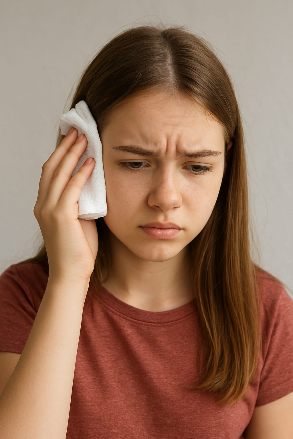 The TV continued to drone on as Ella disappeared. She didn't take very long. She returned with two boxes and a damp washcloth.