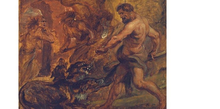 This Drabble, a story in exactly 100 words, was written to a word prompt set by D.A. Ratliff and the Facebook Group: Writers Unite! The below painting by Rubens shows Heracles fighting Cerberus. Having beaten the boatman, Charon, into ferrying him across the river Styx, Heracles must defeat Cerberus, who guards the gate to the Underworld, domain of the dead.