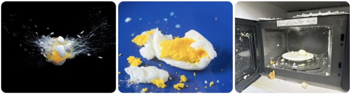 In multiple reported incidents, eggs heated in a microwave exploded after removal, sometimes while being handled, peeled, or bitten (ask Kevin Bacon!).