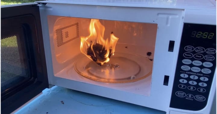 My ex's best friend's boys put their Hot Wheels in the microwave years ago, just to see what would happen. I caught one of mine microwaving with the silverware on the plate.... My mom microwaved scrambled eggs, and my dad did hamburgers (both were awful...) Oh, the things I have witnessed.