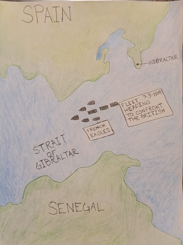 With these ships Napoleon could finally make an offensive naval attack. His Admirals sent these five ships along with three French ships of the line into the Strait of Gibraltar. Their orders were simple; make the straight unsafe waters for the British. After patrolling The Straits of Gibraltar and surrounding waters for several days, two British ships were spotted. It was the afternoon of July 3rd, 1809.The event of that day is still celebrated in both France and New Kemet.