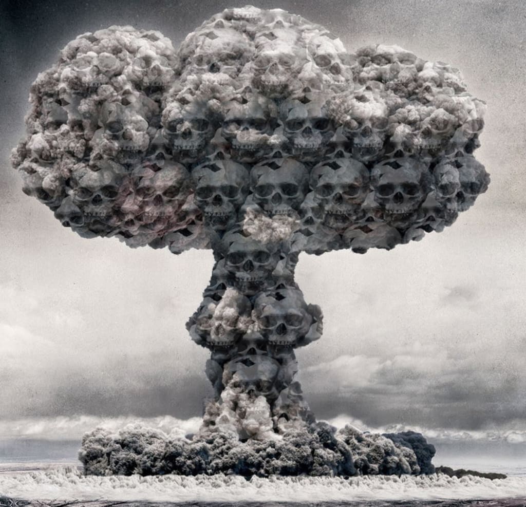 I turned to face the city to my south west and I see a mushroom cloud forming just like in those bad movies and internet videos. I look to the west, the south, the north, in every direction, more dull thuds, more mushroom clouds and less hope by the minute. Cell phones won't work there's no power, all you can hear are failing sirens, people screaming, metal being torn and sheared and the dull thud of the after blasts - even though it was a minute ago, now we've got plenty of gas seepages and lots of raw electricity in the mix. Hope died in my eyes in the shape of yet another explosion, my remaining time here destined to be shaped like a mushroom cloud. My skin is crawling like its alive, either a bad case of nerves or fallout, either way I'm proper fucked. I can now smell my own burning flesh mingled with the smoke from houses, buildings and other people on fire. There is a metallic tang on the back of my tongue and my throat as well. I think I just tasted those melted people I saw down the road a bit.