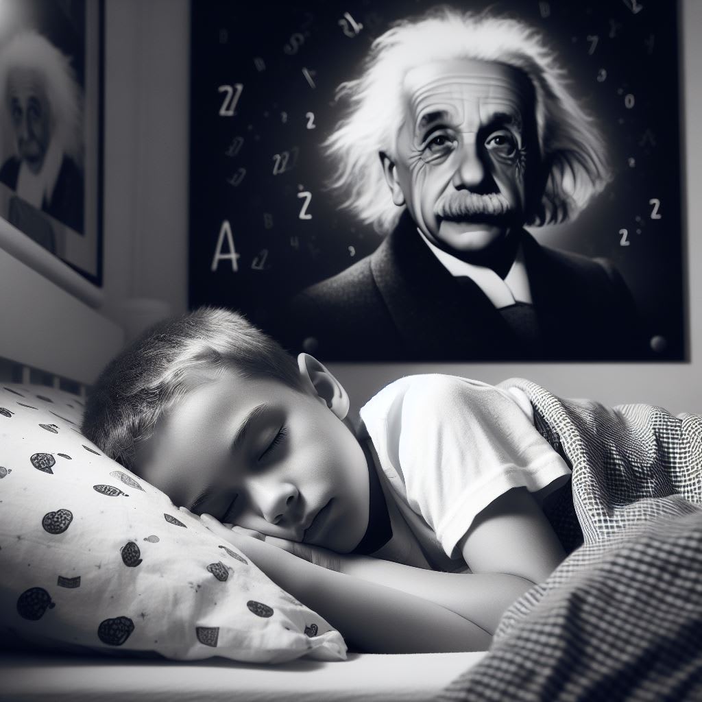 "Oh, I don't think so," his Dad answered. "But you know, a lot of geniuses were like that. They said Einstein couldn't even talk till he was five."