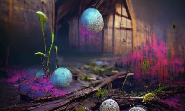 They hung upside down from the ceiling beams of the windy barn, like liquid stalactites lined up in endless, perfect rows upon the base of nearly every beam in the ceiling . Each and every one matching and resembling gossamer tears suspended by the most of slender of, almost ethereal threads. Occasionally the daylight pierces the cracks in the outer wall of the barn, highlighting a lazy smoke that drifts aimlessly from a nearby chimney. It creeps through the walls of the barn and is reflected through and around the orbs in a thousand crazy directions as diffused colours melt amongst themselves on the surrounding walls. The locals know these delicate orbs as tears of the dragons, each one of these silvery suspended drops are fairie chrysalis’ that are native to this area. Spoken of by both young and old, it is said, more whispered around these parts and some others; that a hatching of would bestow upon the host great luck and fortune, a hatching of this size could very well make a new king. The thunder of an approaching storm speaks to the hatchling fairies, they slowly begin to roll and gyrate in their membranous shells emitting a low resonate hum and the occasional bursts of pure white light. The storm intensifies and the occasional burst of lightning whips them into a fervent fevered frenzy. The fairie cocoons begin to dissolve into the very air around them as the sheer beauty of the occupant inside becomes more and more noticeable. Thin wings, as soft as a summer breath slowly unfold with an almost liquid grace, and then the most tiny, almost perfect female human face appears coyly and is slowly revealed beneath the opening wings. Smiling, she stretches her wings in a ballet of slow delicacy then with an effortless flutter, launches into the air. Her maiden flight becomes a netted swansong. Just outside the barn, near the door but not in the way, a weathered hand written sign sits next to a recently used chopping block. Fresh blood and other loathsome appearing substances threaten to spill down it on one side -