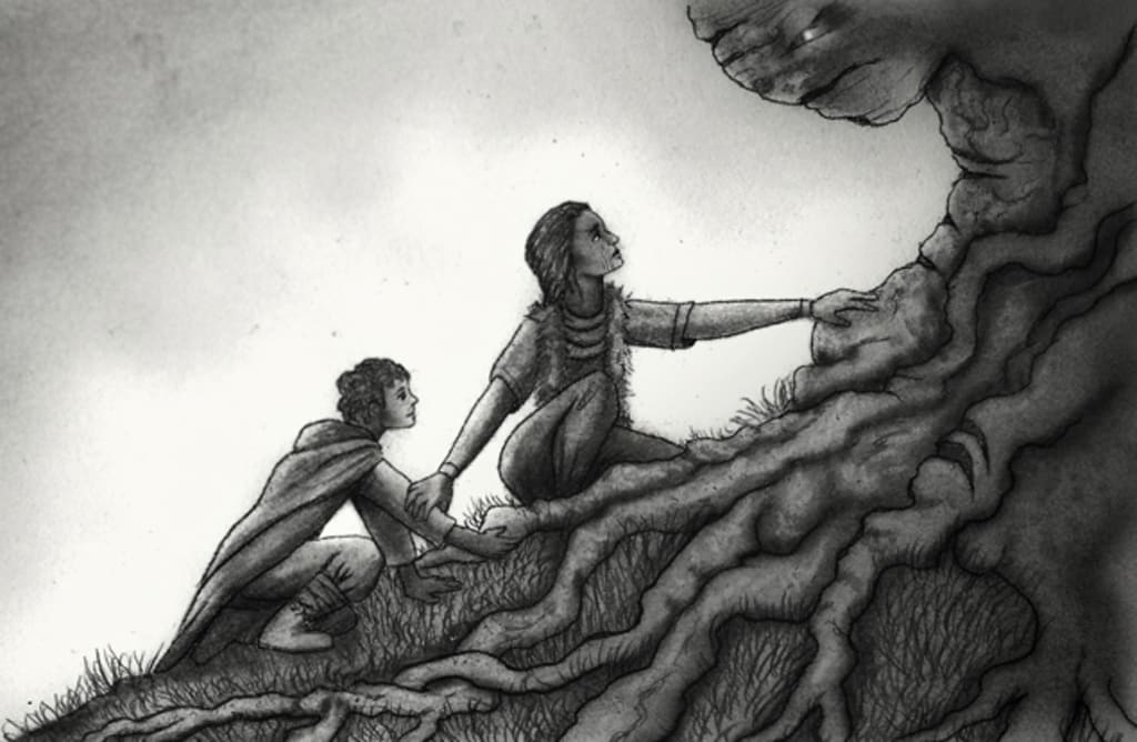 “Look, don’t be afraid. Here,” Astrid took hold of Knud’s hand and pressed it against the tree. Knud winced as he felt a strange energy shiver around his fingertips and a low hum rumbled from inside the tree.