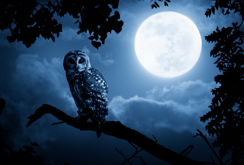 The owls eyes began to glow a deep shape of violet as it peered on from above.