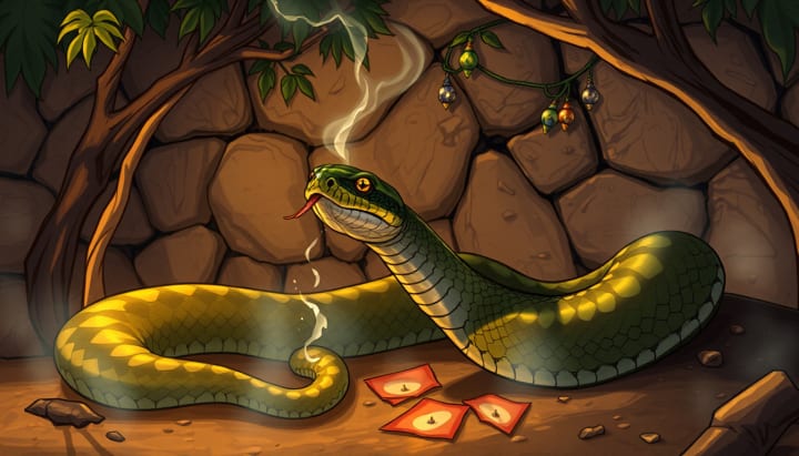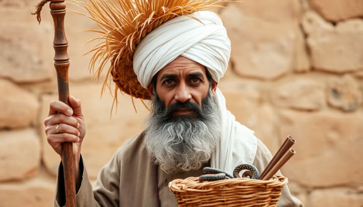 Asran agreed and offered his ear, and Hassan opened his basket (the charmer’s basket), releasing a small snake. Hassan lightly bit it and said, "That's it, Asran, you have taken the vow and are now a charmer."