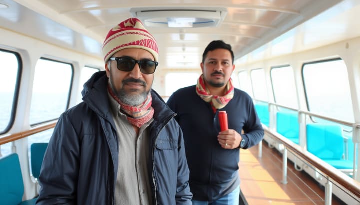 Hassan reached the side of the ship and boarded it. The foreigner saw him and called out to him,