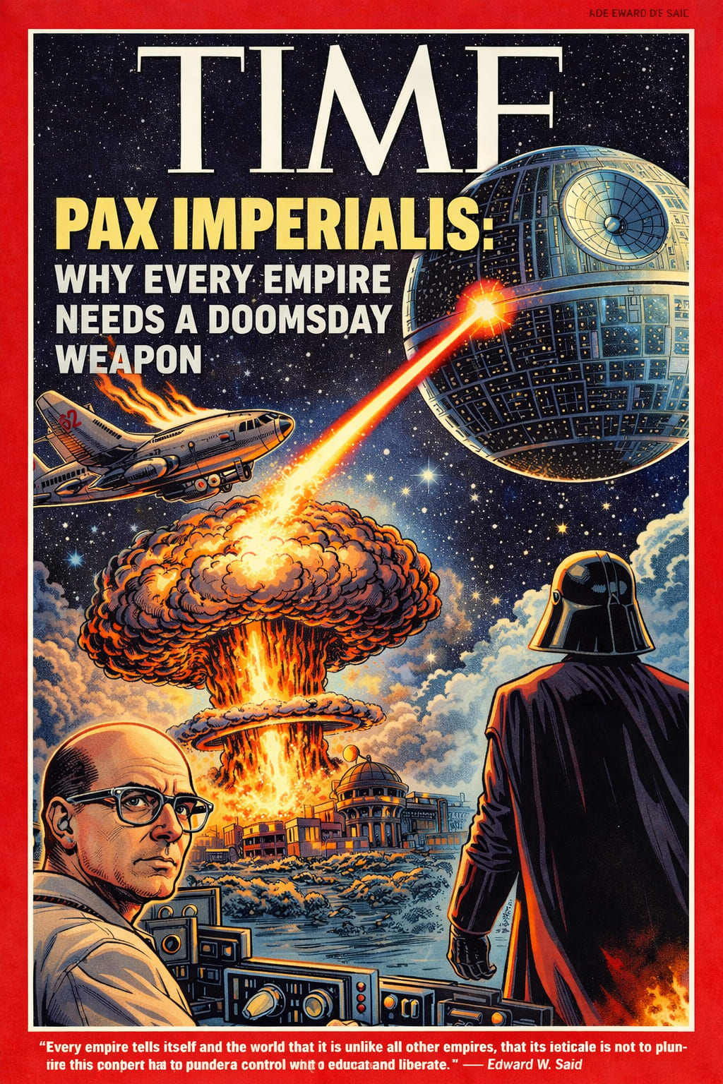 Every empire tells a story about itself. It claims to be a reluctant hegemon, a civilising force, a guardian of order in a chaotic world. Edward W. Said captured this imperial self-mythology with ruthless clarity when he wrote: ‘Every empire, however, tells itself and the world that it is unlike all other empires, that its mission is not to plunder and control but to educate and liberate.’ The promise is always peace, stability, progress. Yet behind this language of benevolence stands an apparatus of overwhelming violence. Empires do not rule through persuasion alone. They require an ultimate weapon, a technological embodiment of terror that transforms domination into inevitability and resistance into madness. From the atomic bomb to the Death Star, from clone armies to genetically engineered super-soldiers in The Mandalorian, the logic remains unchanged. Universal peace, or Pax, is purchased through the threat of total annihilation.