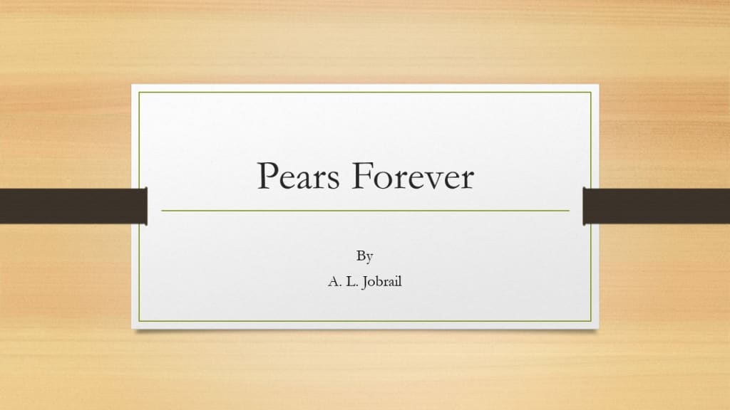 Theo strolls the grounds to think. Bright sunshine warms the air. The scent of fall assails his nostrils. The cool breeze causes him to shiver and button his jacket. He glances at the pear tree branches full of ripe, golden fruit. A branch dangles in front of him proffering its pears for him to taste, to enjoy. He plucks one and takes a bite. The juice runs down his hand and onto his jacket.