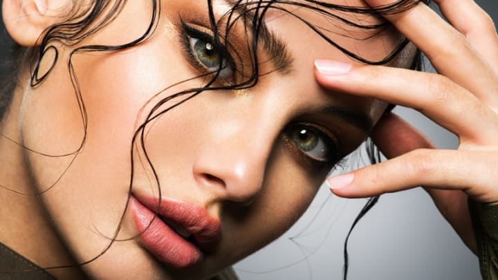 “Yeah, so I see. It’s a good look.” I grinned and winked. “Your mascara is a tad … thinned.” I wasn’t sorry at all. The immediate thought of this vision of loveliness lying spread eagled… wet, willing, beckoning … Mahogany waves of cascading hair framing her heart shaped face …, I shook the picture from my frontal lobe and swallowed. “That’s okay. Can I help you? I don’t have a towel handy, but I do have a napkin.” Reaching into my front pocket, taking the opportunity to surreptitiously adjust my package, I pulled out a couple of slightly wadded napkins from the cafeteria and passed them to her.