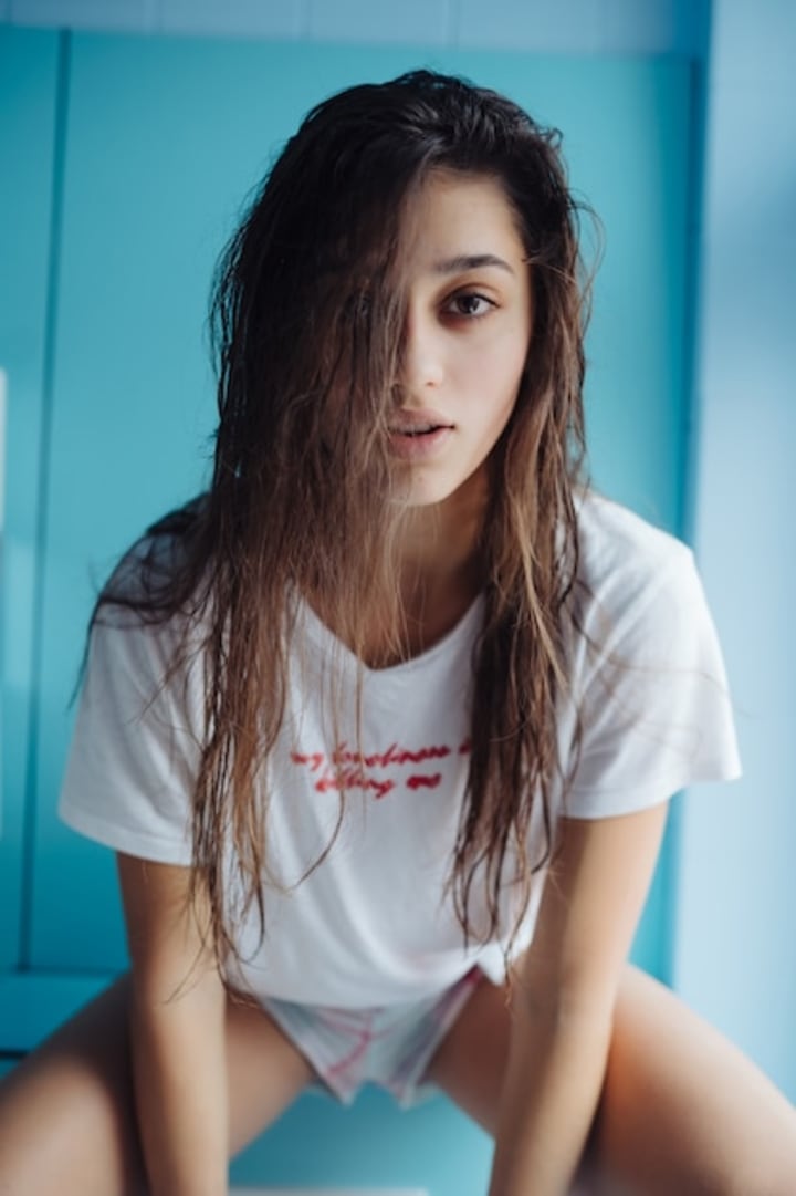 ‘Holy crap!’ How could I have not noticed those legs sway in? “Uh…., yes?” I stammered as my eyes, rising to her face, struggled not to linger on the displayed cleavage leaning so near my right arm. As she set my phone in my grasping hand I couldn’t help but notice her wet tee-shirt displayed a sheer black bra with tatted edges. Mahogany hair cascaded down, a silken waterfall framing a heart-shaped face with a small beauty mark under one eye. Her mascara, rain washed, had spread around it like a ruby in coal. Setting my phone back down, I jolted upright. My chair wobbled backward, legs emitting a squeal of protest.