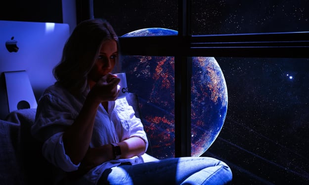 Neetra stood, prettily smoothing her skirts and cringing again. The ample occupant of the caterpillar-tracked wheelchair smiled up at her. As it happened he was a caterpillar himself, a huge one, each fat fleshy segment of his reclining body as round and stuffed as an airline pillow. It was not so much that however as his formal pinstripe, cleverly tailored so as to give a little sleeve and cuff to each of his innumerable small stubby feet, which conferred on him so proprietorial an air that Neetra knew him at once from their prior communications.