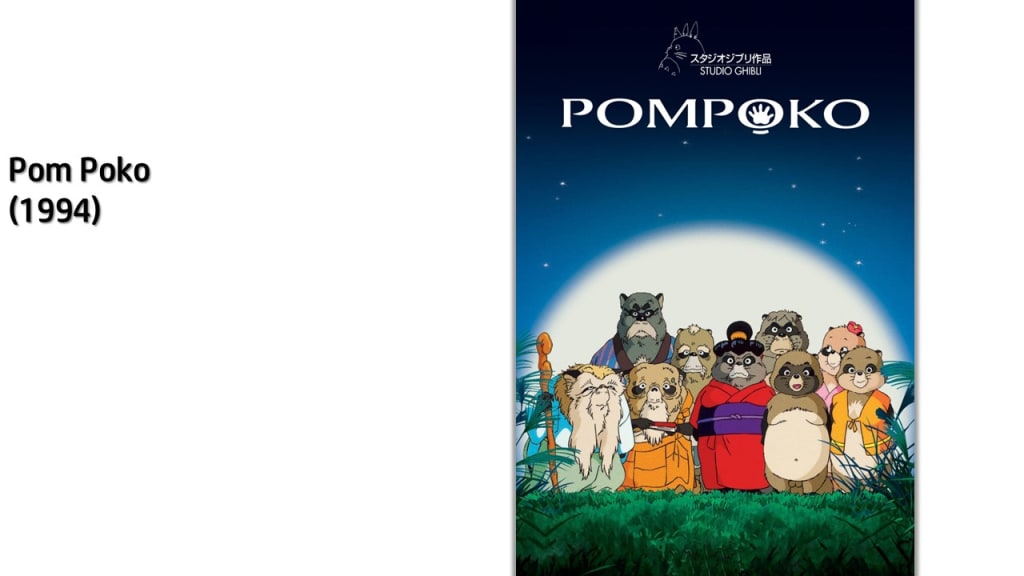 Pom Poko is a whimsical and environmentally-conscious anime film from Studio Ghibli. It tells the story of a group of shape-shifting raccoon dogs (tanuki) who live in the forests of Japan. As their habitat is threatened by urban development, the tanuki band together to use their magical abilities to try and save their home. The film blends elements of Japanese folklore, environmental themes, and the tanuki's mischievous antics to create a unique and engaging narrative.