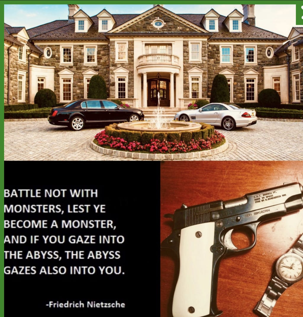 Rain starts to fall against the window now, as I pick up the gun for the last time and turn off its safety. I look at the clock, and it reads 9:50 pm. Suddenly a single memory falls like a feather through the tar like blackness of my misery, the rain reminds me of an earlier time, when I sat on the porch and laughed with my friends and family, a time before I had what I thought all people wanted, which to me meant having it all.