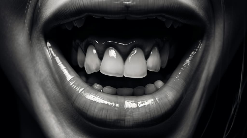 Martha's anxious eyes stared up at him, her mouth agape. Nathan, his gloved hands gripping the dental instruments tightly, experienced a disturbing sensation—a disorienting mix of reality and delusion. His mind shifted, and he perceived Martha's gaping mouth as an abyss, beckoning him to explore its depths.