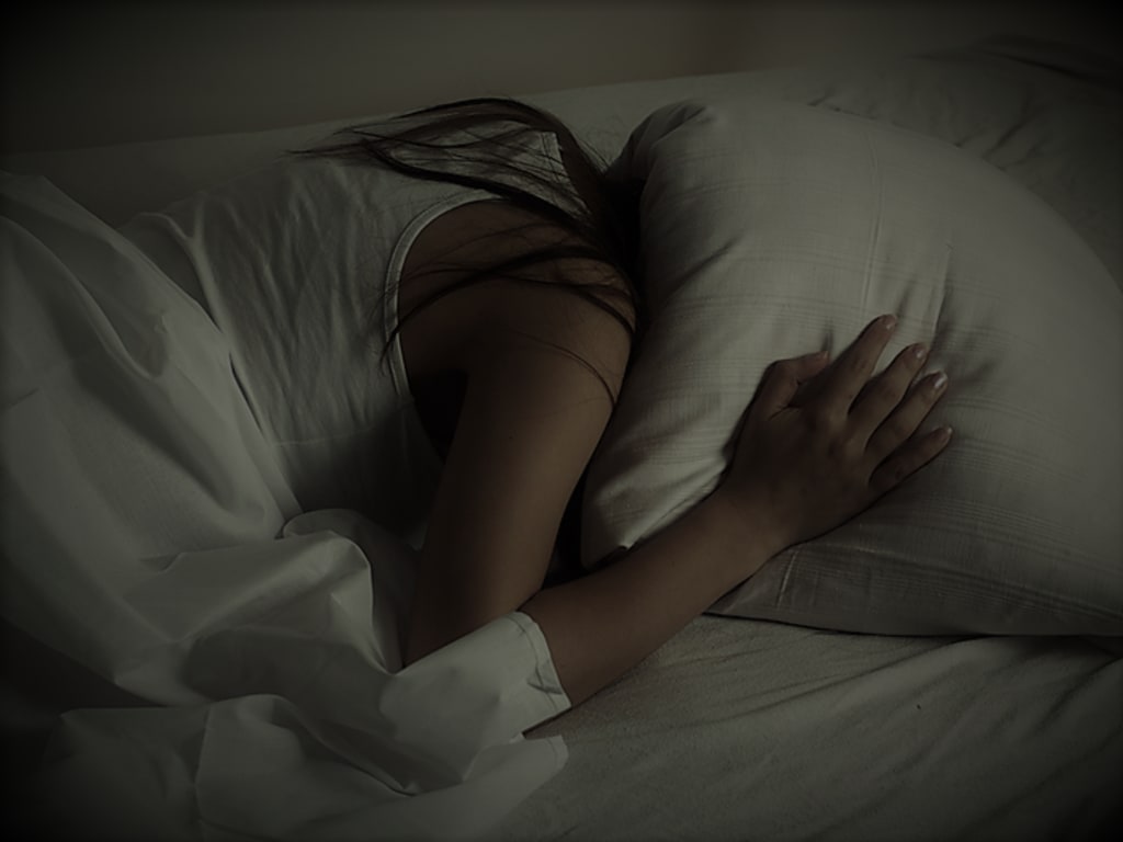 A knock came at her door. Moaning softly, she lifted her head and peered towards the interruption.