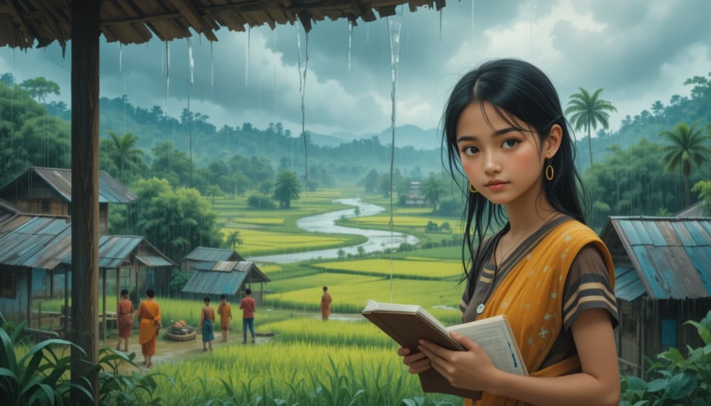 Her refuge was the village school, where Ms. Farida, a kind but stern teacher, saw Runa’s potential. “You have a sharp mind,” Farida told her, handing back a dog-eared copy of Tagore’s poems. “Don’t let the rain drown your dreams.” Runa clung to those words, scribbling her own poetry in a notebook she hid under her mattress. Her verses spoke of rivers that carried hope, of roofs that held despite the storm.