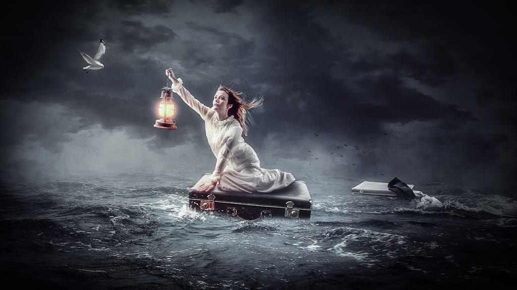 I start walking towards the cliff path where we’d started out earlier, only feels like an hour or so ago my new husband was giving me a piggy back over the pebbles, but the sun is already starting to set, I must have sat on the beach longer than I thought. As I round the corner I see the same woman who was stood on the beach earlier, I follow her gaze towards a group walking towards us. They are walking slowly, heads down, it almost reminds me of a funeral procession. As they get closer I see David’s red baseball cap and awful green Hawaiian shirt and I call out to him but he doesn’t hear me. I start walking towards them, as I pass by the woman she touches my arm, I stop and look at her questioningly. She doesn’t say a word, just looks at me and shakes her head.