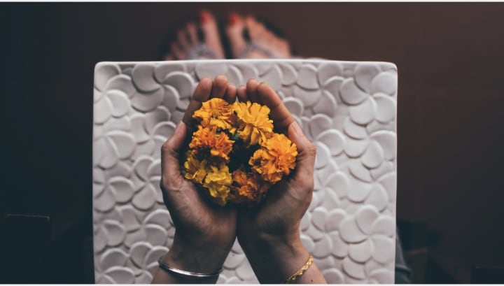 She walked up to the beautiful ornate bar, and ordered a sparkling wine, although she was in good time, there were quite a few people seated for the performance already. On the bar top she saw some bunches of marigolds, wrapped in tissue paper and foil, and presumably culled from the front garden bed. Impulsively, she bought a bunch, grasped her wineglass, and made her way to the rows of fold out chairs.