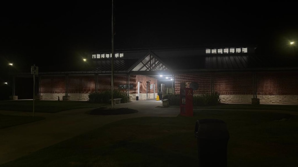 The rear-view mirror reflected the strong headlights of a semi-truck. It was just past midnight when she put on her indicator to alert the truck that she was getting into the right lane. There were no exit signs with a clustered menu of fast-food restaurants and gas stations, but a blue sign with white lettering that said, ‘Rest Area 10 miles.’ She shifted in her seat, bladder uncomfortably full, and dumbly had a sip of the half-empty Sprite from her cupholder. Landry’s stomach started to cramp and curdle, and her situation became more urgent.