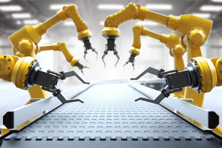 > Manual labor once performed by humans is now carried out by robotic counterparts, more efficient and tireless.