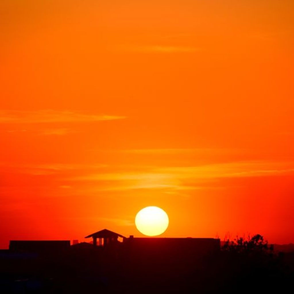 The sun was beginning to set on the small seaside town. The sky was painted in shades of pink, orange, and red, and the warm breeze carried the smell of saltwater and the sound of seagulls. On a rooftop overlooking the ocean, a young woman sat with her legs dangling over the edge. She watched as the sun sank lower and lower, and the sky grew darker.