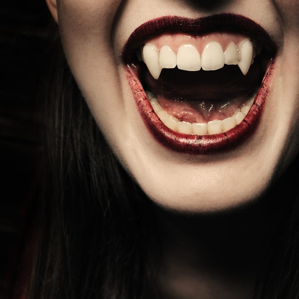 "Natalia did," replied Giselle. "She's my therapist...and it's not a tattoo." Giselle gave a fiendish smirk towards Justin, before suddenly unveiling a set of fangs and lunging at Justin's throat. Justin's screams were loud, but faded quickly, as Giselle completely drained him of his blood. Afterwards, Giselle heard her doorbell ring, and she rushed to the door with great delight.