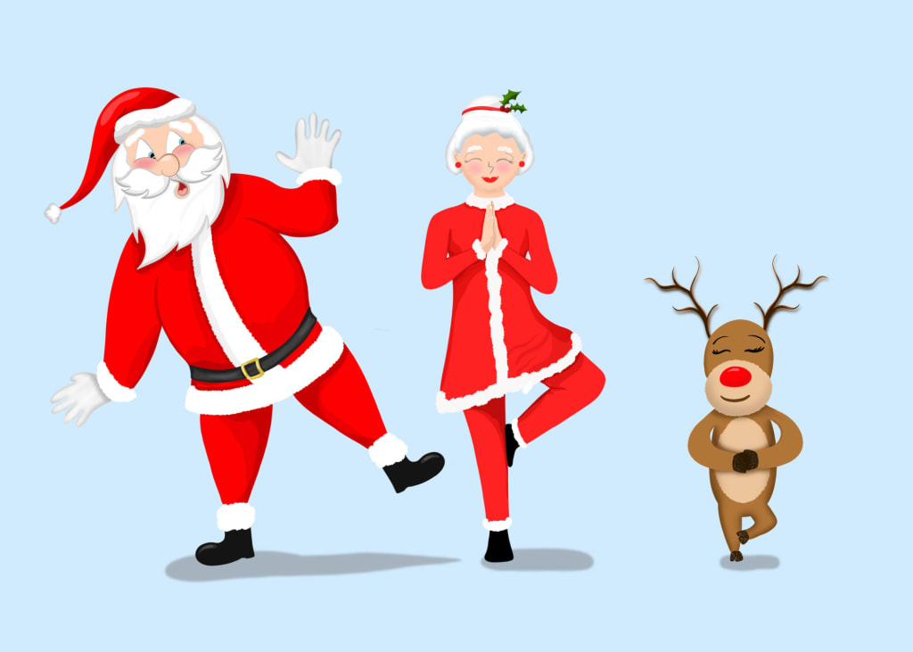Santa was off to learn about some Christmas yoga with Mrs. Claus and Rudolph. When he arrived at the Jolly Jubilee Yoga studio, classical Christmas music played in the background, vanilla cookie-scented candles lit, and a yoga mat that felt as soft as his belly was lying on the ground.