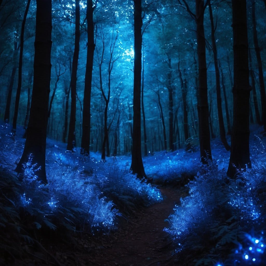 “You want me to come with you?” Scion asked, her voice wavering nervously. The creature nodded its head, and Scion obeyed, letting the creature pull her along. The forest got darker as they walked deeper, but a gentle, bluish-white glow remained, like the light of a full moon. However, the trees' canopy blocked her view of the sky.