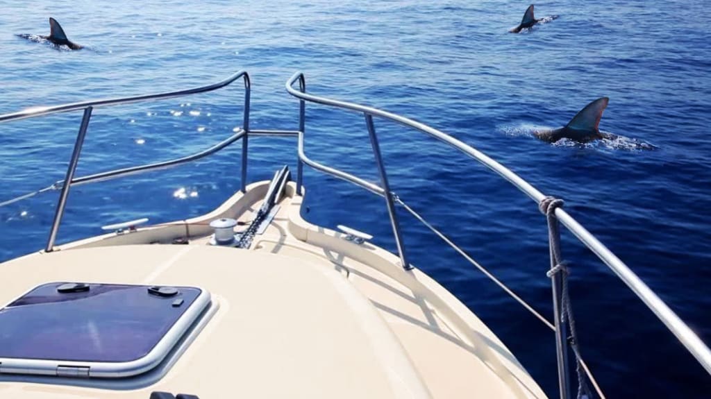 Their underwater realm was mesmerizing. They spent several hours submerged with the sea life, captivated by the breath-taking scenery. Most of the sharks seemed to lose interest within several minutes, but one with a gash in its dorsal fin—later dubbed the ever-so-original nickname of “Sharkie” by Serena—kept close. It disappeared every so often, but it always returned, looking at the two with an inquisitive eye. Serena would later insist that “Sharkie” wanted to be their best friend; Karissa, while skeptical about that notion, recognized it held no ill will or aggression. The crew member that dived with them in the cage snapped a variety of photos with their underwater camera, much to Serena’s delight; she insisted on buying a commemorative photo of “Sharkie” before they left—they couldn’t possibly not leave without a photo of their new “best friend.” The experience seemed to last an eternity yet simultaneously was over within a blink of an eye. Once their dive time concluded, they re-emerged to the water’s surface, climbing onto the boat.