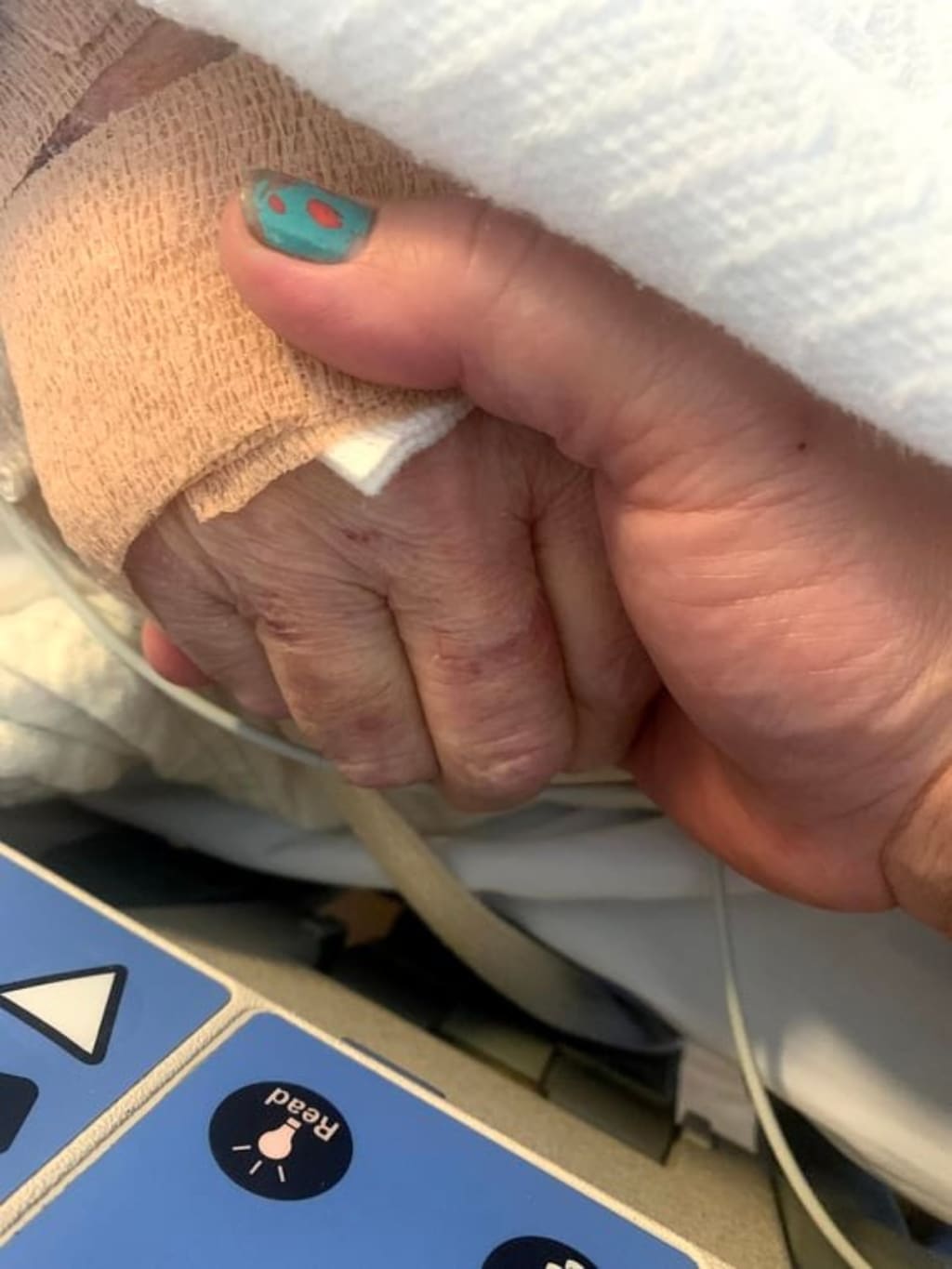 She leaned down where her lips were by his ears and side of his face, and hers had touched. Feeling the warmth of his daughter's face had seemed to relax him, and his body seemed to respond by just going loose and relaxed. Her father squeezed her hands as she spoke their last words between the two of them. Daddy, I know you are tired, it's okay, go be with bubby and grandma. hug them both so tight for me, okay. Tell grandpa and both of them I love them so much and have missed them so much. Daddy, I"m sorry I fell asleep, and you had to hold on for so long and in pain.. I"m so sorry; I hope I made you proud. I hope that I was what you wanted in a daughter. It's okay to let go now, dad; I'm okay, I promise. It will hurt for a while, but I can do this. Just hug bubby and know I love you both and will be with you one day. I'll be alone, but I'll be okay. The father squeezed with every bit of life and strength he had to let her know he heard her and she was his everything loved her as well. She gave him one last kiss on the forehead like he had done when tucking her in as a child. I love you, daddy, she said with her eyes closed and looking down at her father. He slowly closed his eyes. A nurse came into the room and quietly asked if she was leaving, and in between the sobs, she said yes. The nurse gently touches her hand; it's okay, hon, I have got him from here. The three silently walked back to their car and began the drive home. She looks up at the hospital and silently prays.