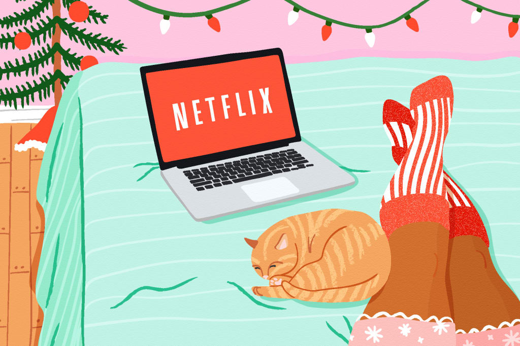 My cat cuddles up beside me as I watch Netflix on my bed.