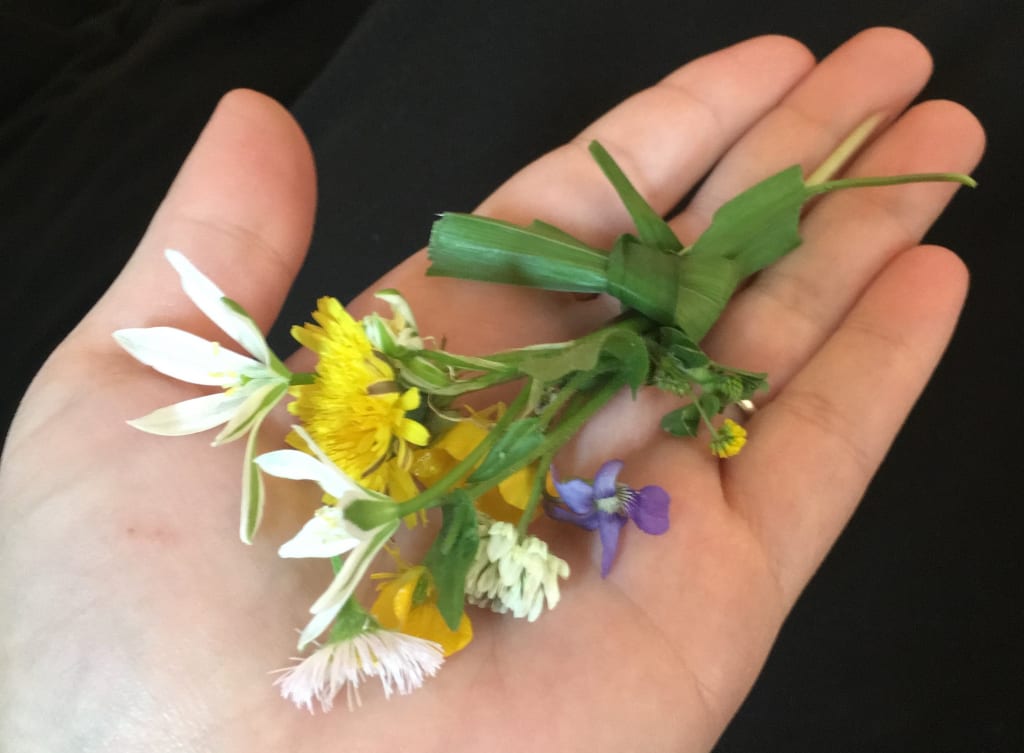 Mrs. Johnson took the bait. "Well, I have sage for memory, peppermint and dill for tummy troubles, rosemary for allergies, and garlic for everything!" She paused, "I have thrown in a few other pretties, but they have to be useful! I planted lavender, but the dandelions and clover just grow on their own." And she took a breath, "The roses out front, someone else planted years ago, I just use them because they have a nice flavor. Some of the flowers, now, they are there to keep bugs away, but sometimes I make them up into ointment for sunburns, but that's a little trouble."