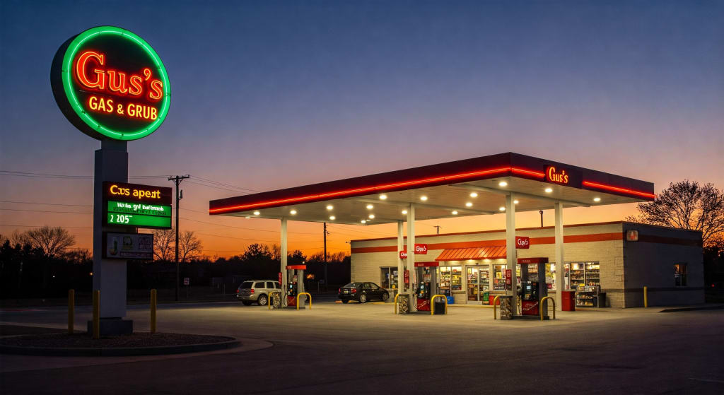 Carl couldn’t believe such a rotten odor could come from an adorable three-year-old. He had been sure his eyes weren’t the only ones that burned from the fumes. Without anyone asking, Agent Cochran stopped at the next gas station, a Gus’s Gas and Grub, to allow the children to have a restroom break. For this, Carl was thankful.
