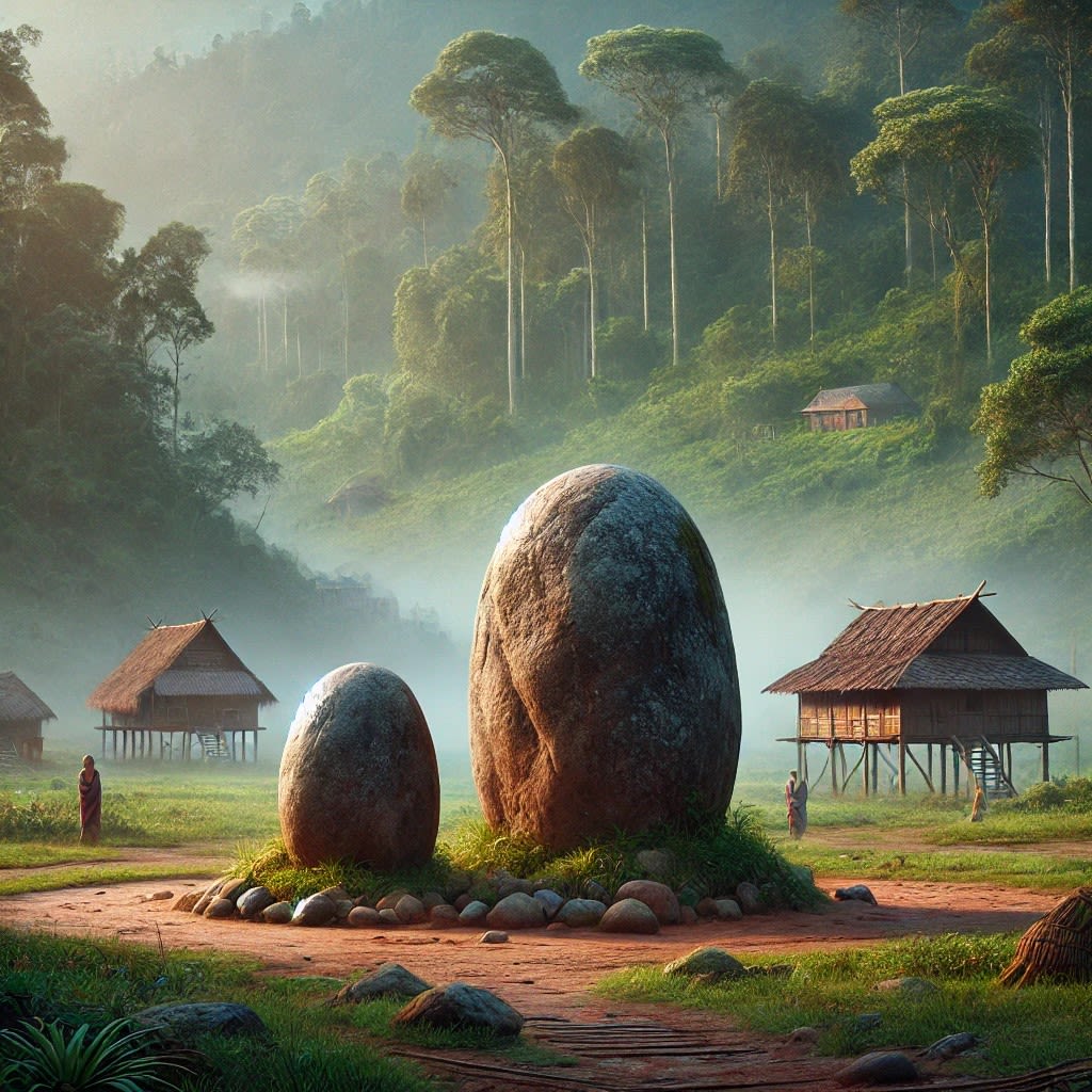 In time, the forest claimed them. The rains washed over their bodies, and the earth took them in. And yet, their story did not end. Where Sopfünuo fell, a great stone rose, smooth and unyielding. Beside it, a smaller stone sat nestled in its shadow—the mother and her child, forever bound.