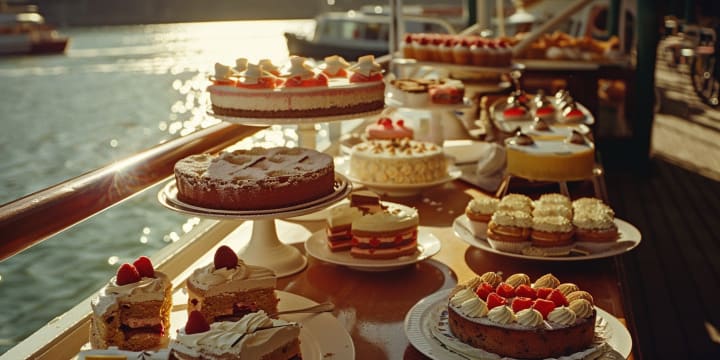 She stumbles against the rail, her boat shoes slipping and crunching through fondant and moulded meringue balls.